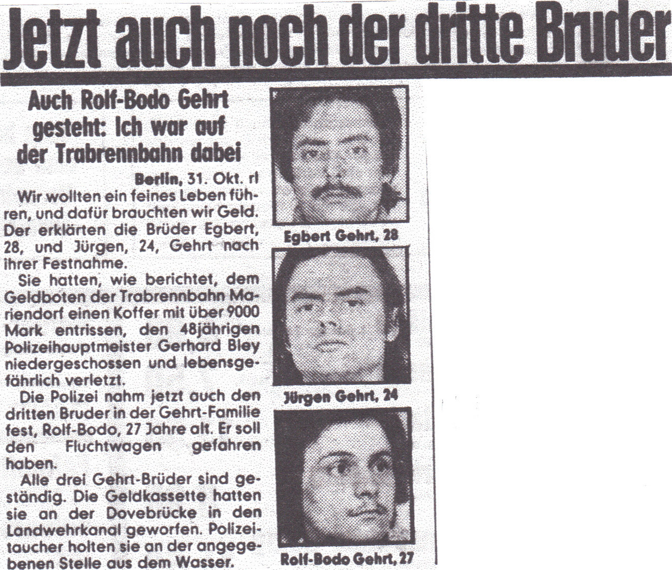 Die Täter: Jürgen Gehrt; Egbert Gehrt; Rolf-Bodo Gehrt |