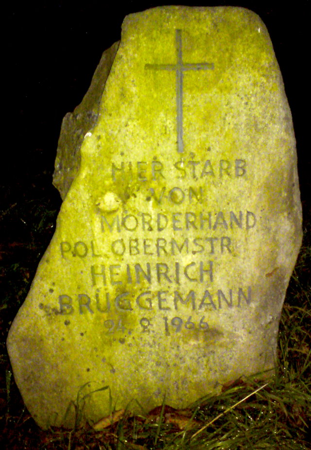 Die Nacht ist zum Tag geworden in Hunteburg-Meyerhöfen. Es ist der 24. Februar 1966, gestern vor 40 Jahren. Grell erleuchten die Scheinwerfer der Polizeifahrzeuge und jede Menge Handleuchten die Wiese des Bauern Bosse. Hier ist gegen 19 Uhr etwas Unfassbares geschehen: Der flüchtige Verbrecher Bruno Fabeyer hat den 46-jährigen Polizeiobermeister Heinrich Brüggemann aus Hunteburg mit drei Schüssen aus seiner langläufigen 6,35-mm-Pistole getötet. Mit einem Feuerwehrfahrzeug wollen die Helfer den in sich zusammengesackten und lebensgefährlich verletzten Beamten in das Ostercappelner Krankenhaus fahren. Doch kaum hat der Wagen mit Blaulicht und Martinshorn den Ort Bohmte hinter sich gelassen, verstirbt der Ordnungshüter. „Grüßt mir meine Frau und die Kinder. Und sagt ihnen, sie sollen nicht traurig sein.“ Dies sind die letzten Worte Heinrich Brüggemanns.