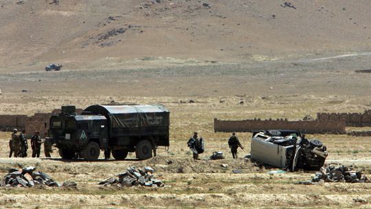 Dschalalabad Road, eine Schotterpiste. Die Männer der amerikanischen